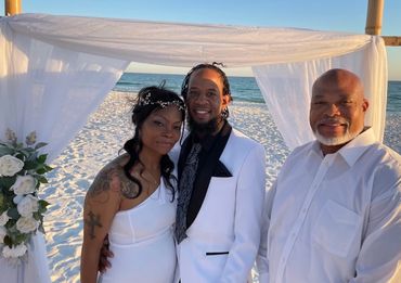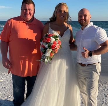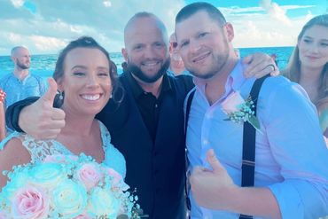 We can insert your custom content, read your own vows or repeat ours. We can do just a bride & groom on the sand or a big indoor wedding and everything in between. Short, tall, black or white. We have licensed ministers in a variety of shapes and colors. You can choose religious or non-religious.